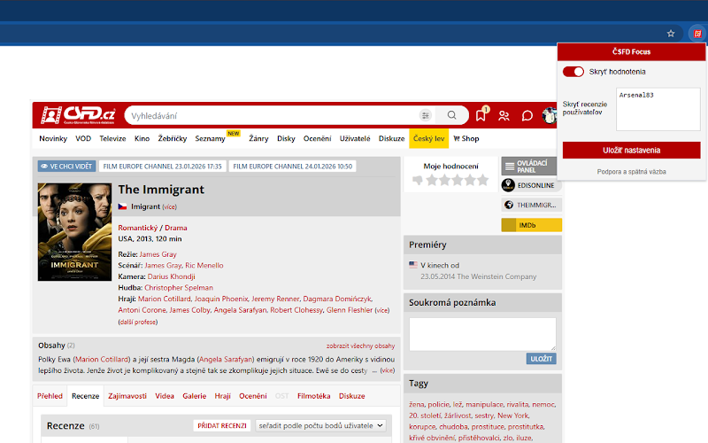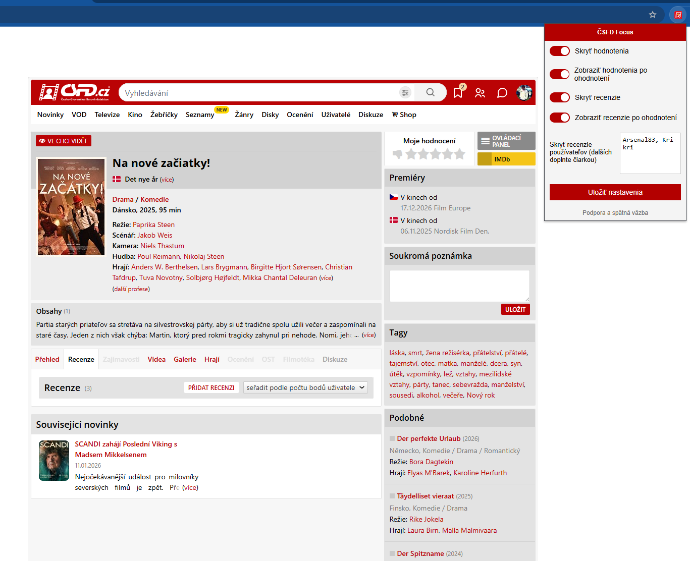 Ako skryť recenzie na ČSFD – ČSFD Focus